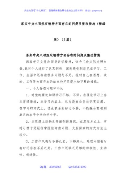 / (5篇)落实中央八项规定精神方面存在的问题及整改措施(精编版)