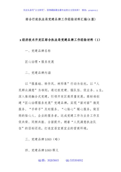 / (4篇)综合行政执法局党建品牌工作经验材料汇编