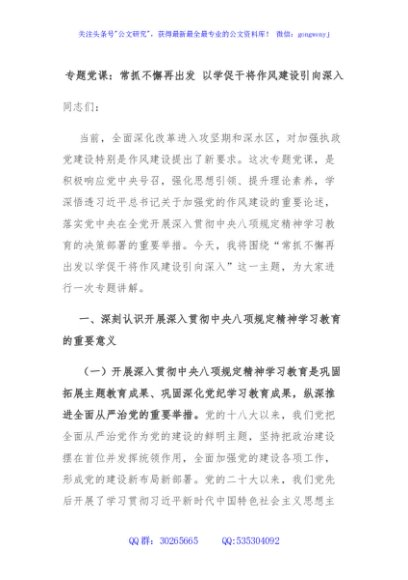 / 专题党课:常抓不懈再出发 以学促干将作风建设引向深入