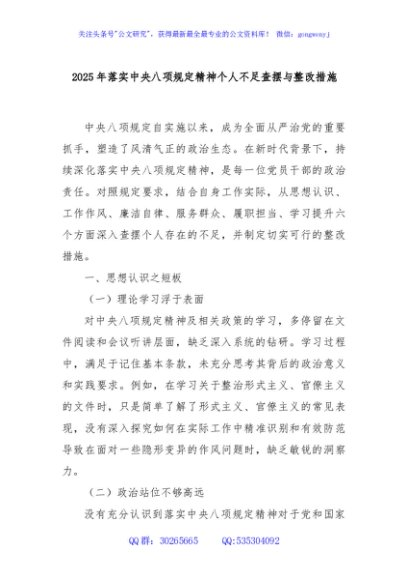 / 2025 年落实中央八项规定精神个人不足查摆与整改措施