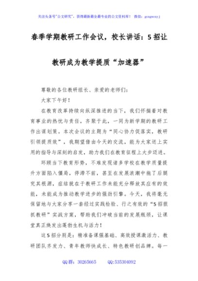 春季学期教研工作会议,校长讲话:5招让教研成为教学提质 “加速器”