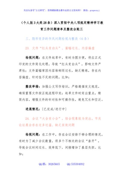 / (个人版3大类28条)深入贯彻中央八项规定精神学习教育工作问题清单及整改台账(三)