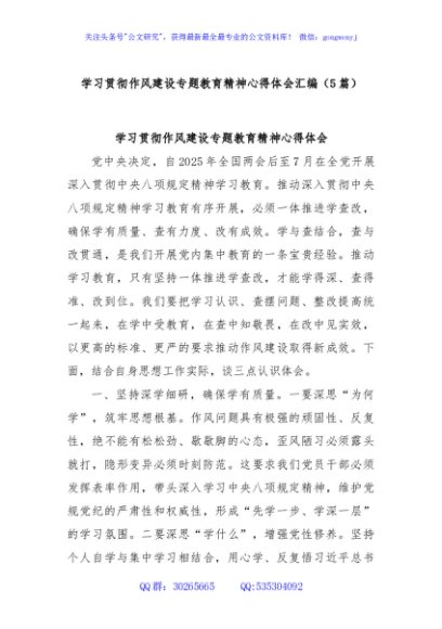 / (5篇)学习贯彻作风建设专题教育精神心得体会汇编