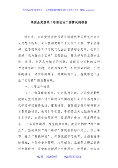 / 某国企党组关于思想政治工作情况的报告