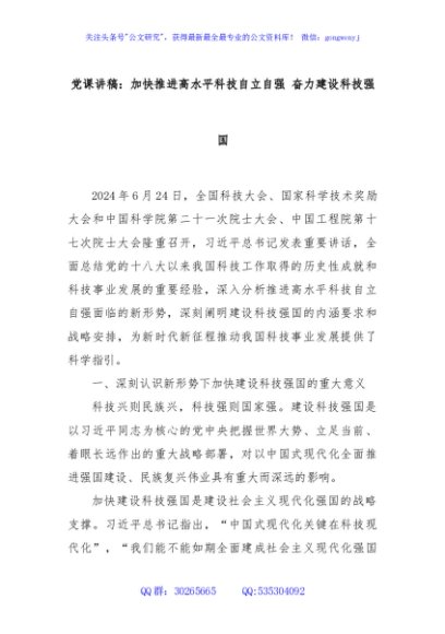 / 党课讲稿:加快推进高水平科技自立自强 奋力建设科技强国