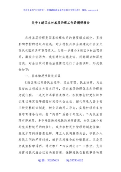 / 关于X新区农村基层治理工作的调研报告