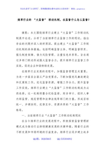 / 烟草行业的 “大监督” 联动机制,在监督什么怎么监督?