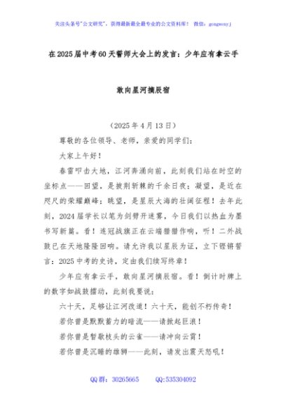 / 在2025届中考60天誓师大会上的发言:少年应有拿云手 敢向星河摘辰宿