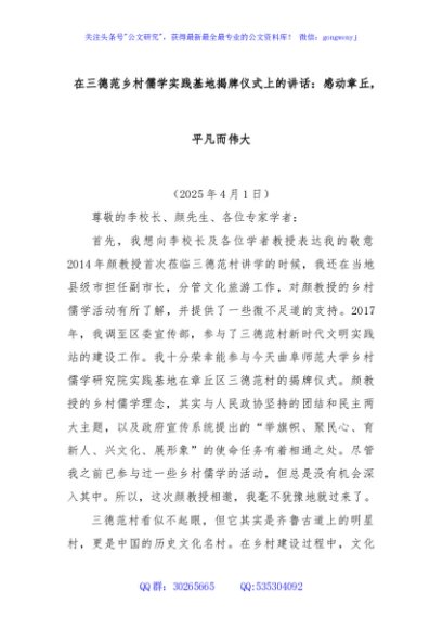 / 在三德范乡村儒学实践基地揭牌仪式上的讲话:感动章丘,平凡而伟大
