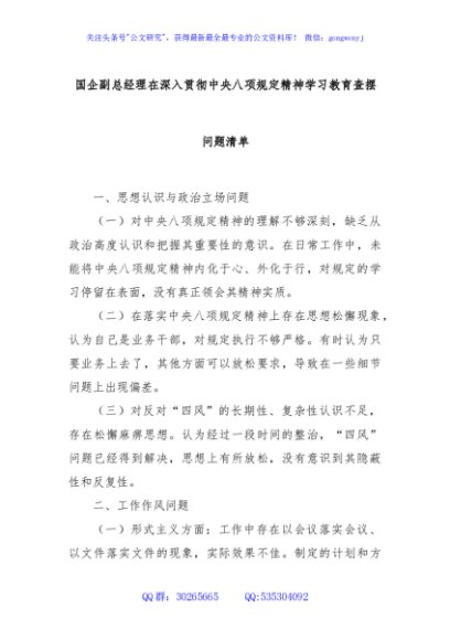 / 国企副总经理在深入贯彻中央八项规定精神学习教育查摆问题清单