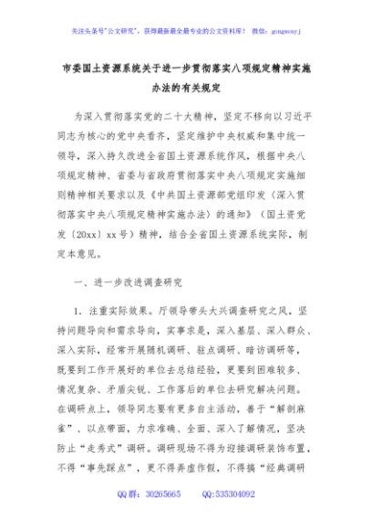 / 市委国土资源系统关于进一步贯彻落实八项规定精神实施办法的有关规定