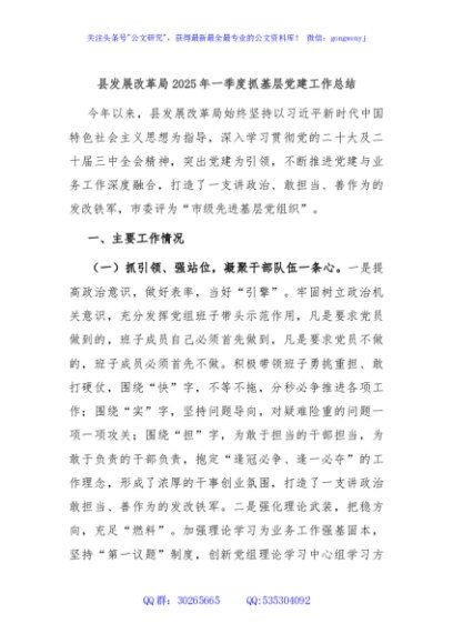 / 县发展改革局2025年一季度抓基层党建工作总结