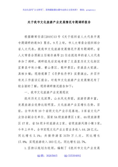 / 关于我市文化旅游产业发展情况专题调研报告