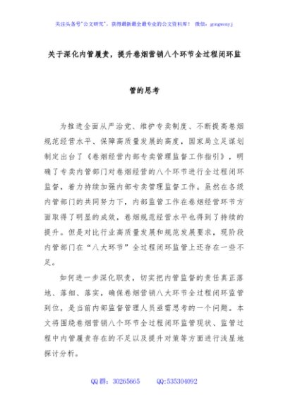 / 关于深化内管履责,提升卷烟营销八个环节全过程闭环监管的思考