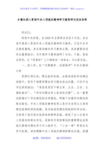 / 乡镇长深入贯彻中央八项规定精神学习教育研讨发言材料