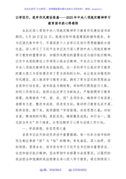 / 以学促行,筑牢作风建设根基——2025年中央八项规定精神学习教育读书班心得感悟