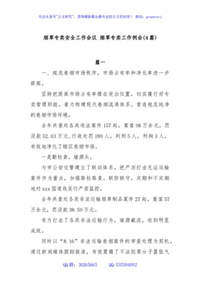 / (4篇)烟草专卖安全工作会议 烟草专卖工作例会