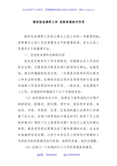 / 做好信息调研工作 发挥参谋助手作用