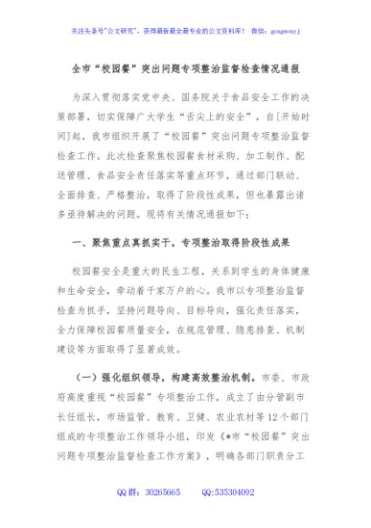 / 全市“校园餐”突出问题专项整治监督检查情况通报