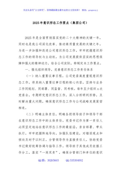 / 2025年意识形态工作要点(集团公司)