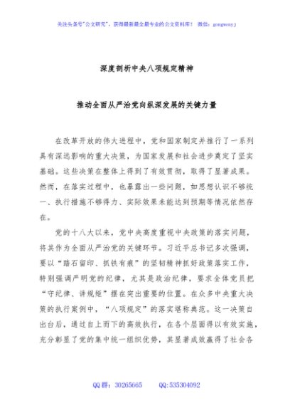 / 党课讲稿:深度剖析中央八项规定精神推动全面从严治党向纵深发展的关键力量