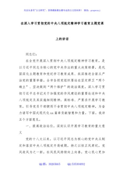/ 在深入学习贯彻党的中央八项规定精神学习教育主题党课上的讲话