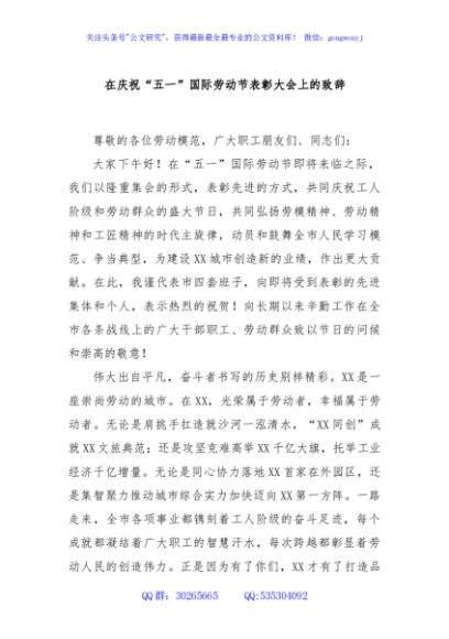 / 在庆祝“五一”国际劳动节表彰大会上的致辞