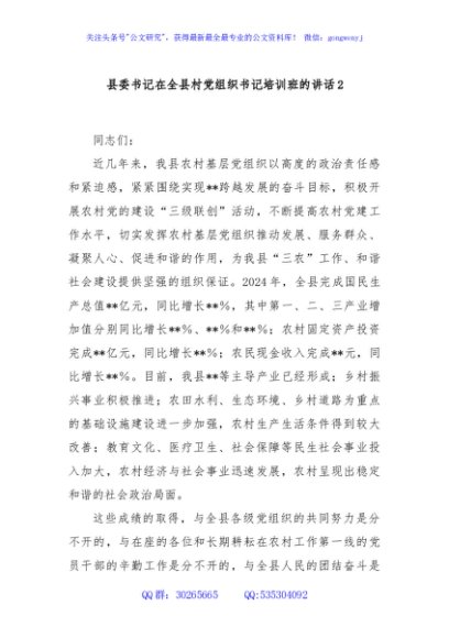 / 县委书记在全县村党组织书记培训班的讲话2