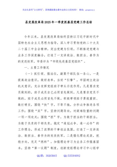 / 县发展改革局2025年一季度抓基层党建工作总结