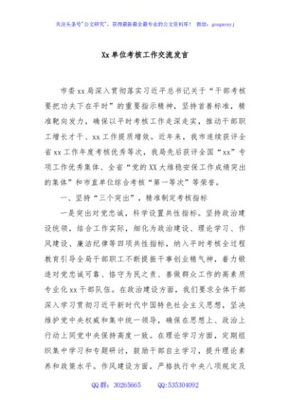 / Xx单位考核工作交流发言