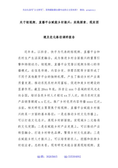 / 关于短视频、直播平台赋能乡村振兴:实践探索、现实困境及优化路径调研报告