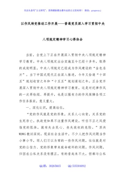 以作风转变推动工作开展——普通党员深入学习贯彻中央八项规定精神学习心得体会
