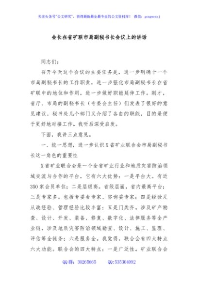 / 会长在省矿联市局副秘书长会议上的讲话