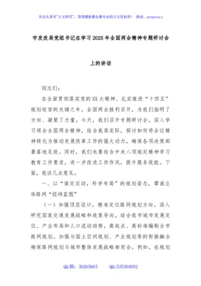 / 市发改局党组书记在学习2025年全国两会精神专题研讨会上的讲话