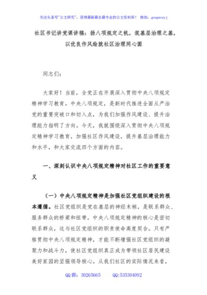 / 社区书记讲党课讲稿:扬八项规定之帆,筑基层治理之基,以优良作风绘就社区治理同心圆