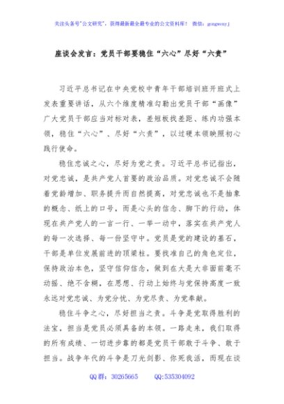 / 座谈会发言:党员干部要稳住“六心”尽好“六责”