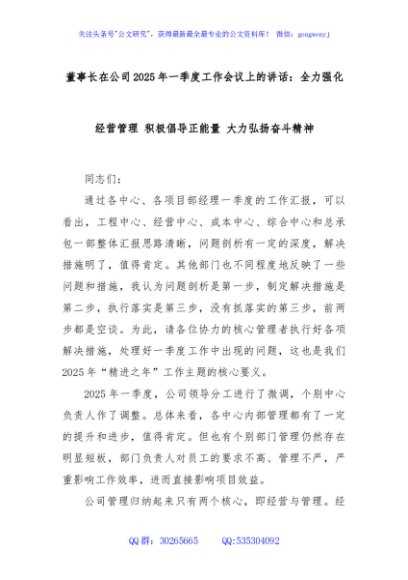 / 董事长在公司2025年一季度工作会议上的讲话:全力强化经营管理 积极倡导正能量 大力弘扬奋斗精神