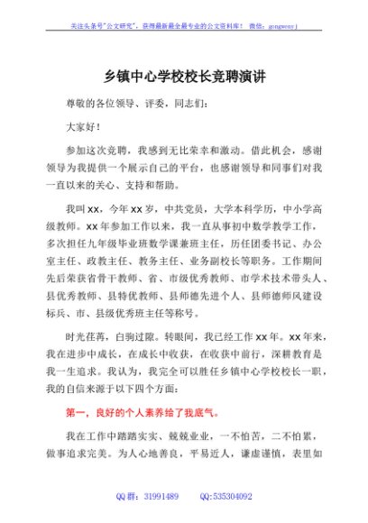 / 乡镇中心学校校长竞聘演讲