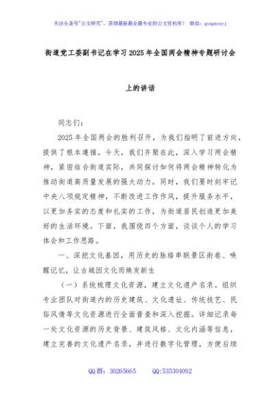 / 街道党工委副书记在学习2025年全国两会精神专题研讨会上的讲话