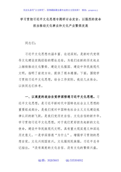 / 学习贯彻习近平文化思想专题研讨会发言:以强烈的使命担当推动文化事业和文化产业繁荣发展