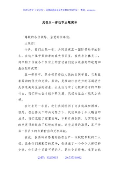 在庆祝“五一”国际劳动节暨表彰劳动模范和先进工作者大会上的讲话