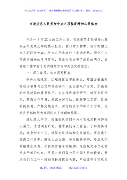 / 市政府办人员贯彻中央八项规定精神心得体会