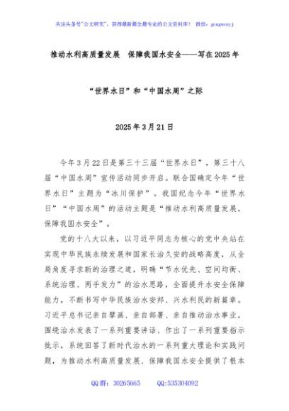/ 推动水利高质量发展 保障我国水安全——写在2025年“世界水日”和“中国水周”之际
