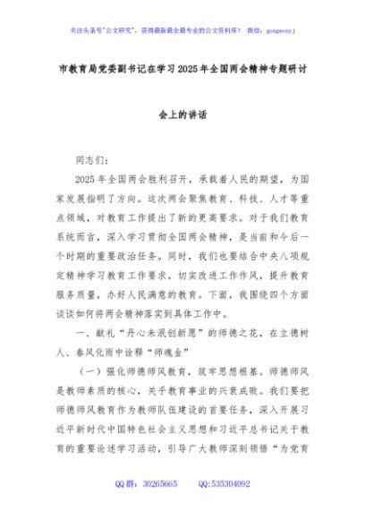 / 市教育局党委副书记在学习2025年全国两会精神专题研讨会上的讲话