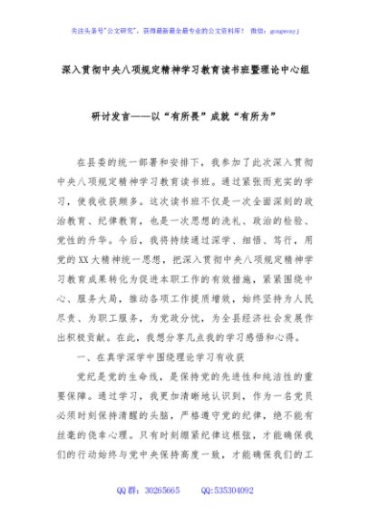 / 深入贯彻中央八项规定精神学习教育读书班暨理论中心组研讨发言——以“有所畏”成就“有所为”