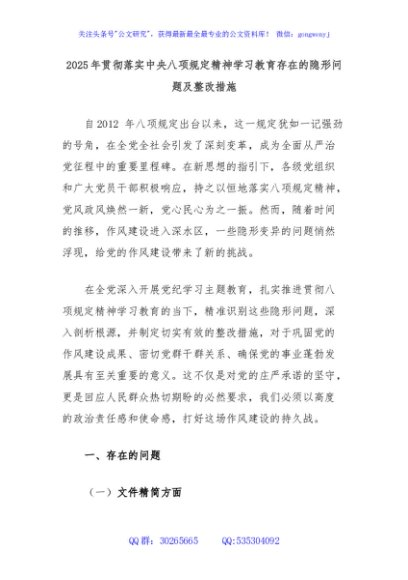 / 2025年贯彻落实中央八项规定精神学习教育存在的隐形问题及整改措施