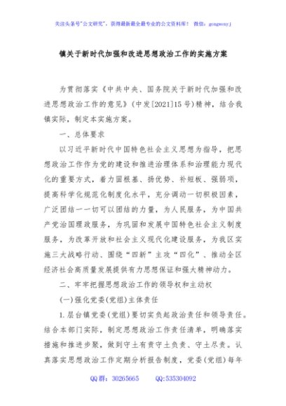 / 镇关于新时代加强和改进思想政治工作的实施方案