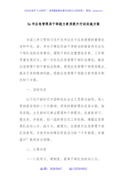 / Xx市应急管理局干部能力素质提升行动实施方案