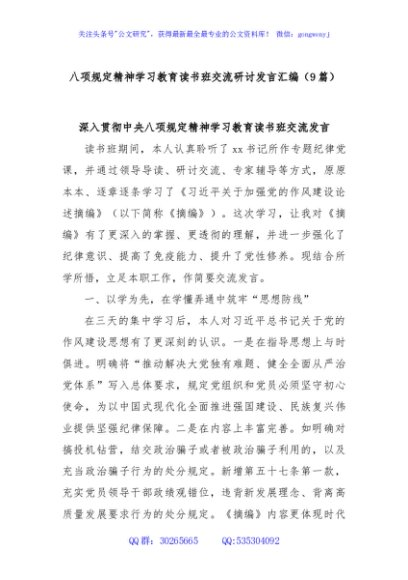 / (9篇)八项规定精神学习教育读书班交流研讨发言汇编