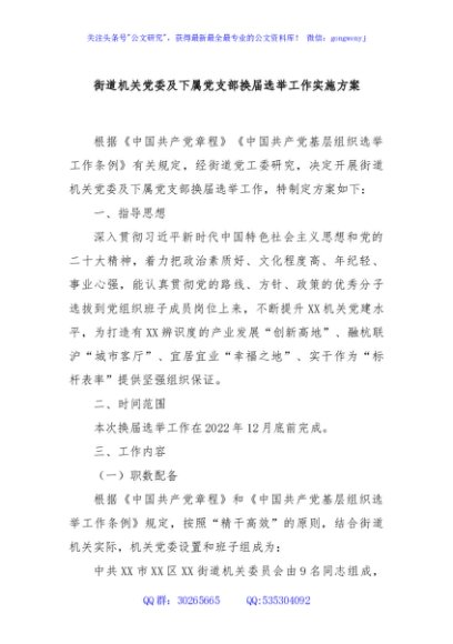 / 街道机关党委及下属党支部换届选举工作实施方案